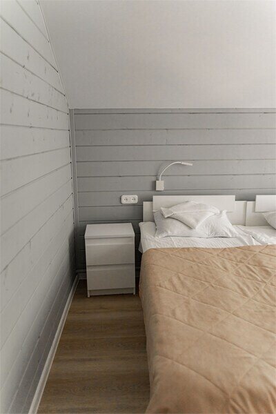 На втором этаже — 2 уютные спальни, оснащенные индивидуальными ванными комнатами, в одной из которых размещена инфракрасная сауна, а во второй — ванная для двоих.