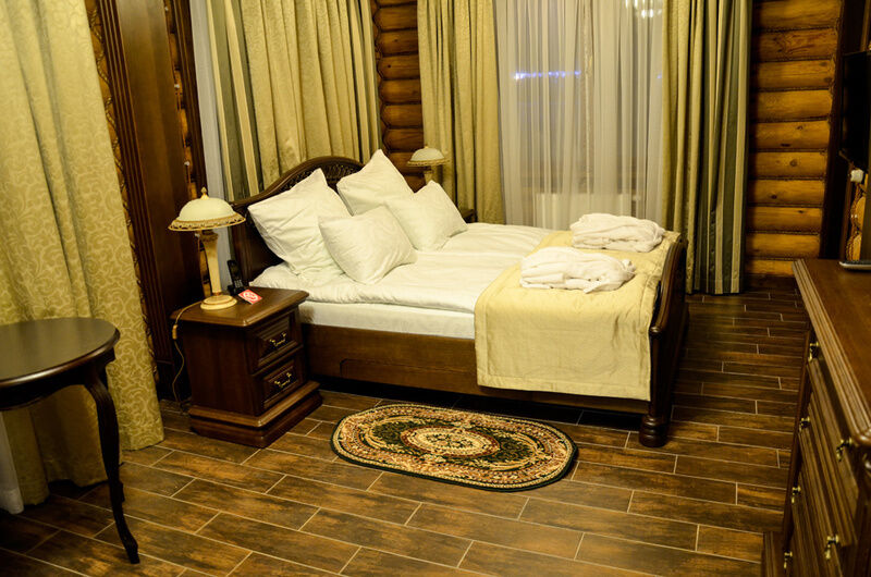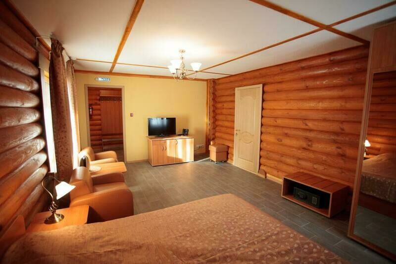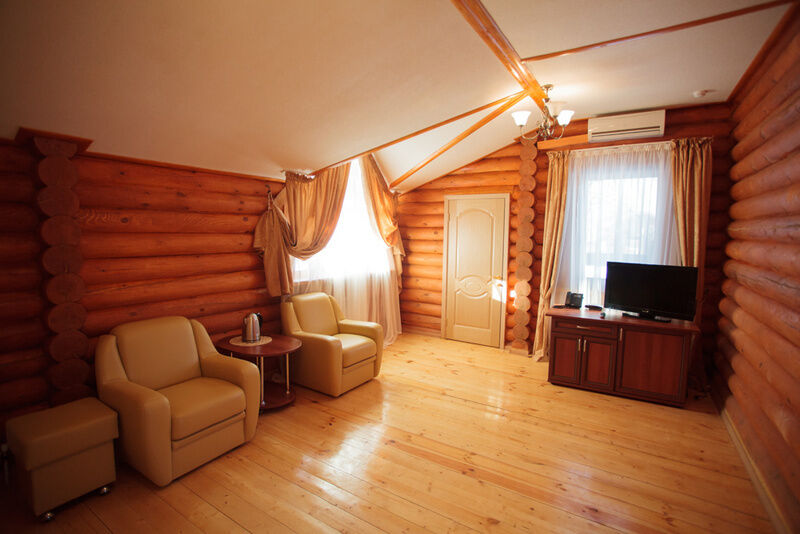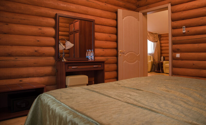 Номер находится на втором этаже двухэтажного срубового дома, вход на второй этаж отдельный с торца здания по лестнице.Номер состоит из двух современно меблированных спален с двуспальными кроватями, уютной гостиной и санузла.