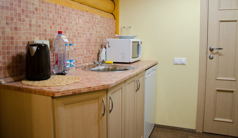 Уютный однокомнатный номер с кухней и отдельным санузлом. Номер находится в одноэтажном срубовом доме. В доме 4 номера, каждый номер имеет отдельный вход. В номере возможны различные варианты размещения (1 односпальная кровать+диван-кровать/2 раздельные кровати/двуспальная кровать).