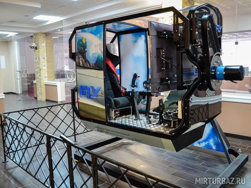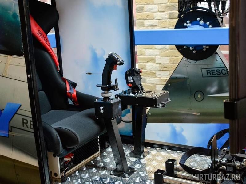 Кабина вращается вокруг своей оси на 360 градусов в четырех направлениях. Конструкция позволяет ощутить реальность «полета» и выполнять фигуры высшего пилотажа. Управление происходит с помощью джойстика авиационного типа.