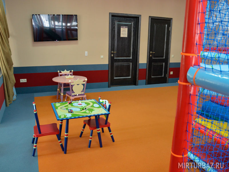 Специально для детей, отдыхающих на базе, создали детскую игровую комнату с волшебным лабиринтом, где дети проводят время под присмотром аниматора.