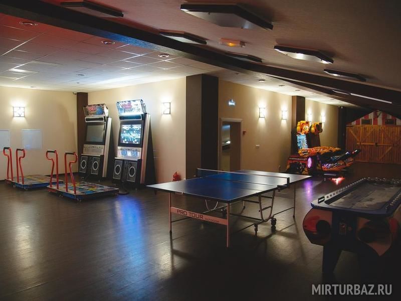 Для своих маленьких гостей парк-отель предлагает различные детские аттракционы - аэрохоккей, мини-баскетбол, настольный теннис, дартс, dance dance revolution и другие.