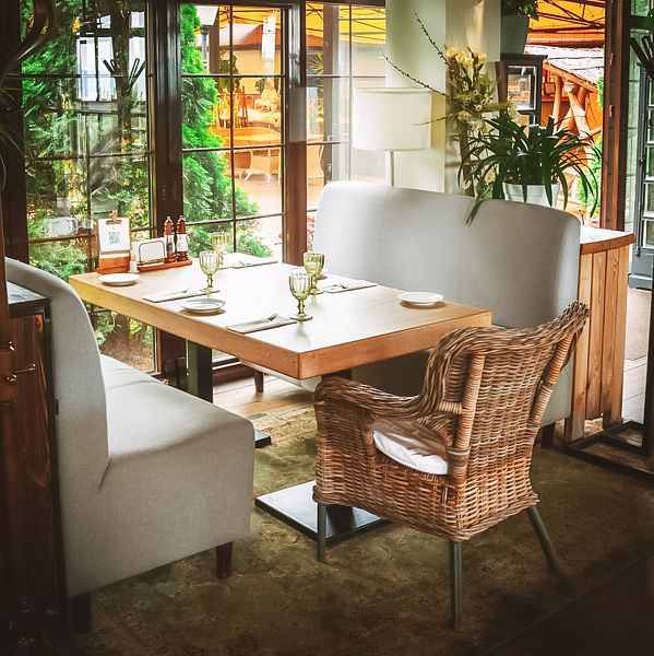 В ресторане неоднократно заказывал обед и ужин. Все вкусно и красиво сервировано. Единственное, что не вписывалось это борщ в стакане. Один раз принесли в тарелке, но по личной просьбе.