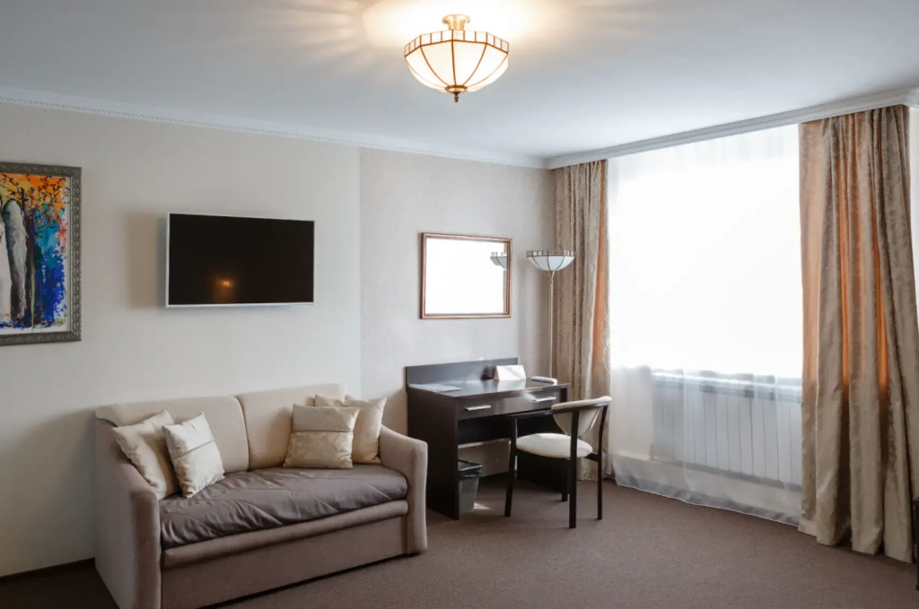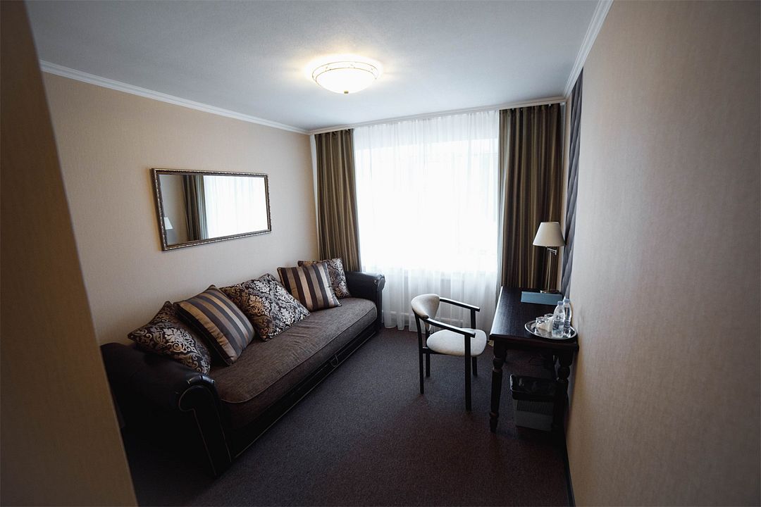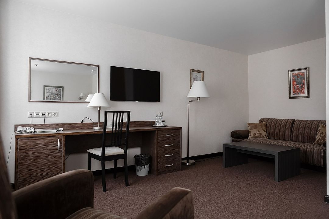 Двухкомнатный или однокомнатный номер, двуспальная или две раздельные кровати, ТВ, кондиционер, телефон, сейф, мини-холодильник, душевая кабина, фен, косметические принадлежности ,чайная станция. Дети до 6-ти лет на основном месте принимаются бесплатно (за питание доп. плата). Детская кроватка (по запросу) комплиментарноУслуги и удобства