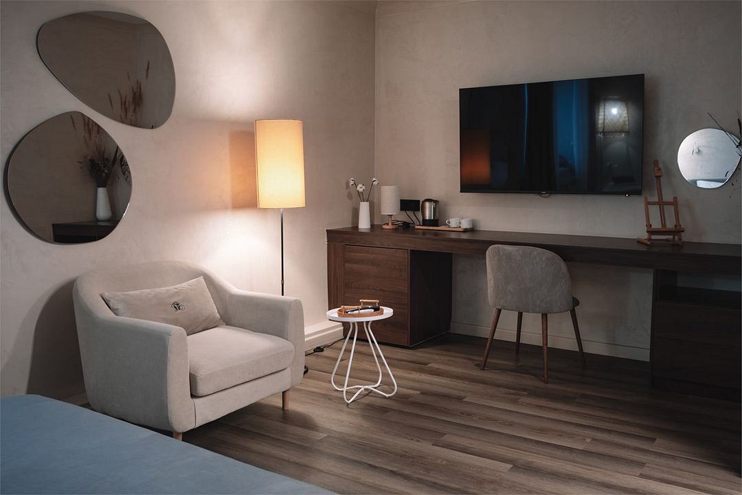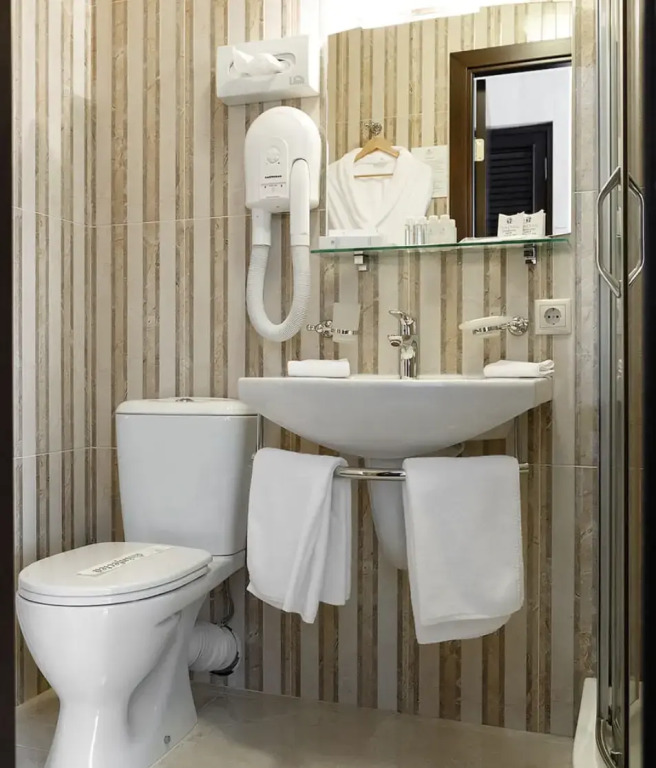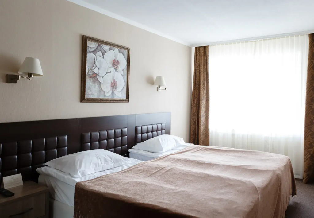 Однокомнатный номер, двуспальная или две раздельные кровати, ТВ, кондиционер, телефон, сейф, мини холодильник, душевая кабина, фен, косметические принадлежности, чайная станция. Дети до 6-ти лет на основном месте принимаются бесплатно (за питание доп. плата). Детская кроватка (по запросу) комплиментарноУслуги и удобства