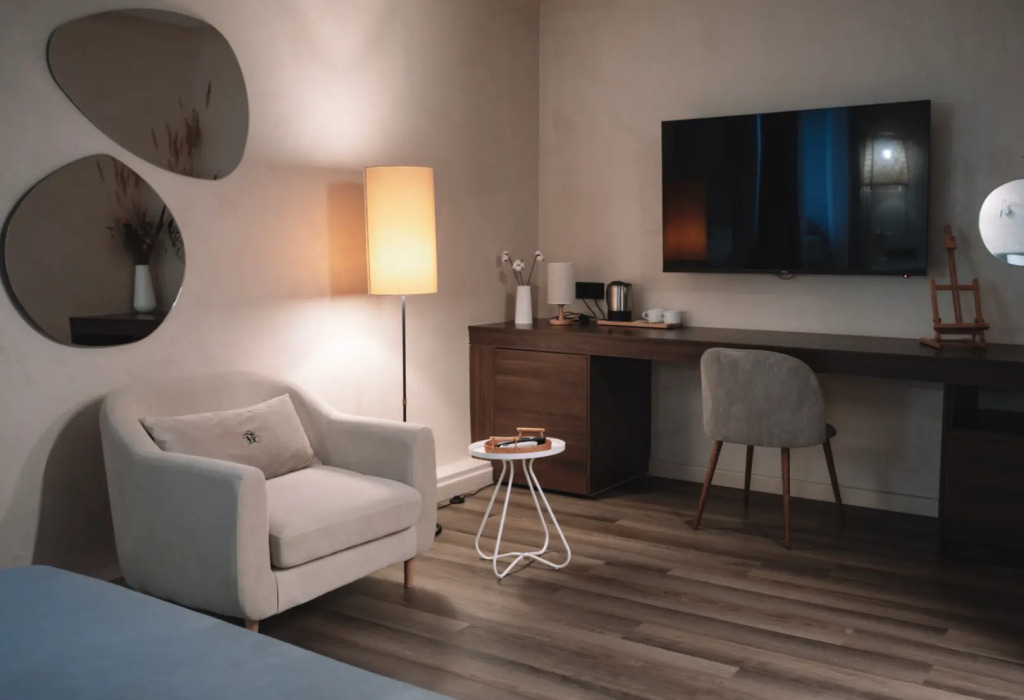 Wi-Fi, телефон, кондиционер, настольные лампы, фен, система безопасности, электронные замки, обогреватель, ванна или душевая кабина, банные принадлежности, халаты, банные полотенца, тапочки, кровать «Queen size», шкаф для одежды, багажная тумба, зеркало, ковер, чайный набор, обслуживание номеров, информационная карта, меню, сейф, минеральная вода, унитаз, раковина, косметическое зеркало, кулер на этаже, вид на реку, кресло, стаканы, стул, туалетные средства, панорамные окна, цифровое тв, диван-кровать, раскладной диван, внутренний телефон, телевизор с плоским экраном, москитная сетка, вид на горы, телевизор со Smart TV, номер для некурящих, рабочий стол, чайная станция, уборка номера, услуги прачечной (платно), вешалки-плечики, мини-бар (платно), шапочка для душа, мыло, можно с питомцамиВ гостиничном номере