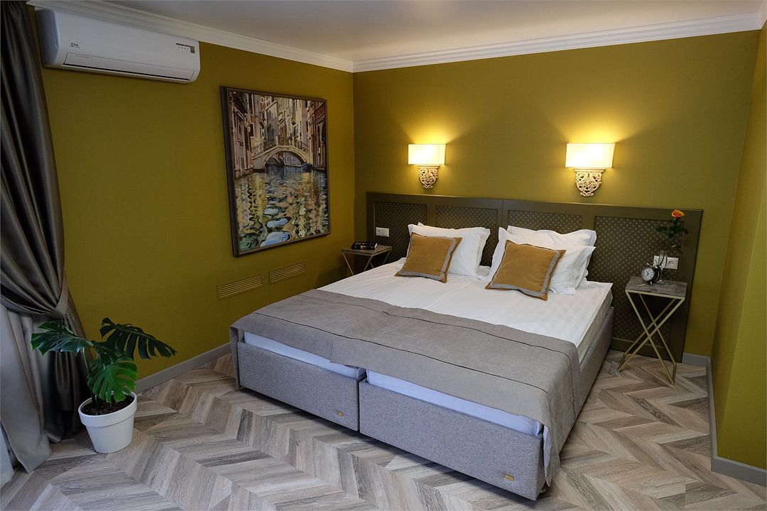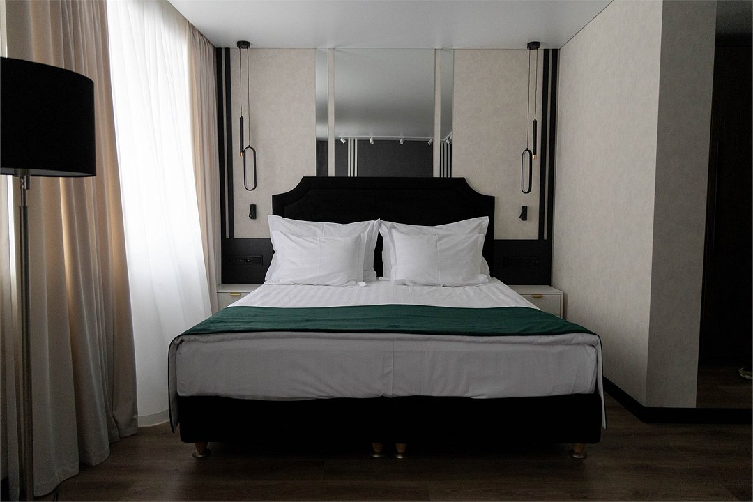 Однокомнатный номер, двуспальная с топпером или две раздельные кровати, ТВ, кондиционер, телефон, сейф, мини-холодильник, душевая кабина, фен, косметические принадлежности, чайная станция Дети до 6-ти лет на основном месте принимаются бесплатно (за питание доп. плата). Детская кроватка (по запросу) комплиментарноУслуги и удобства