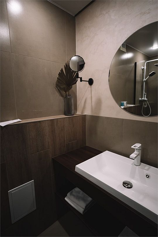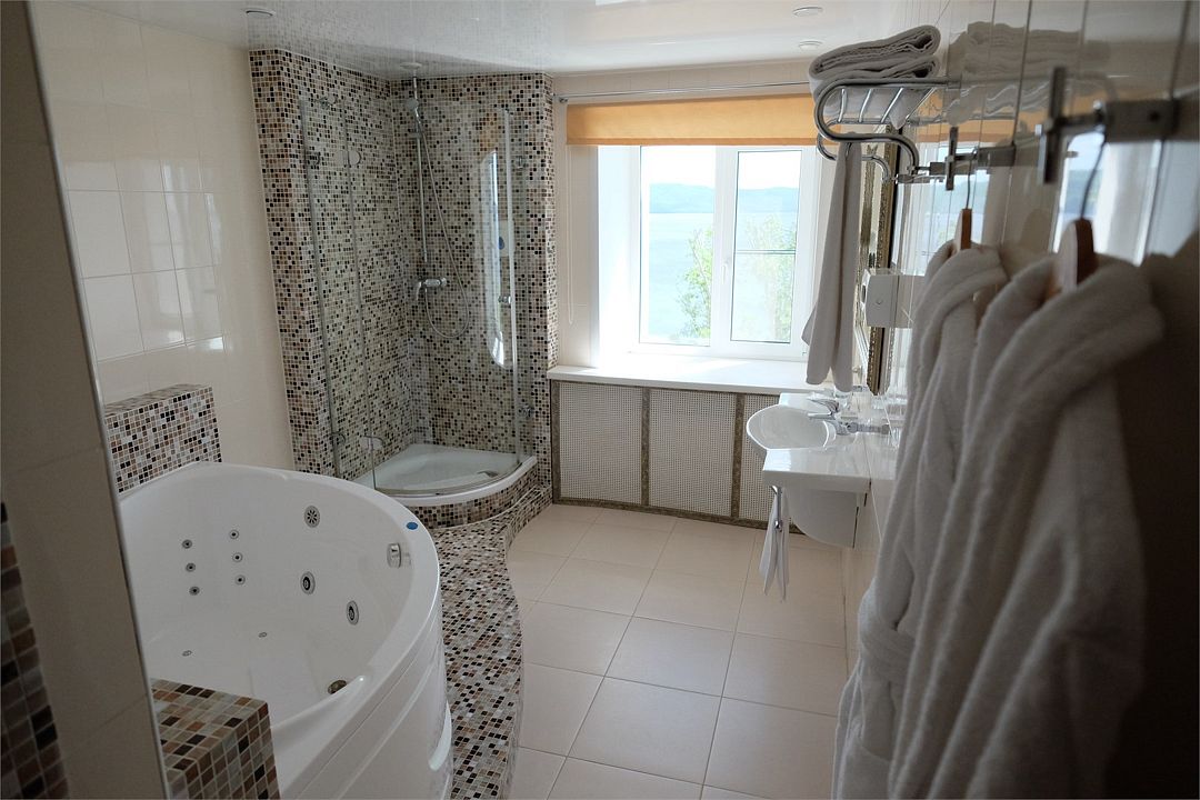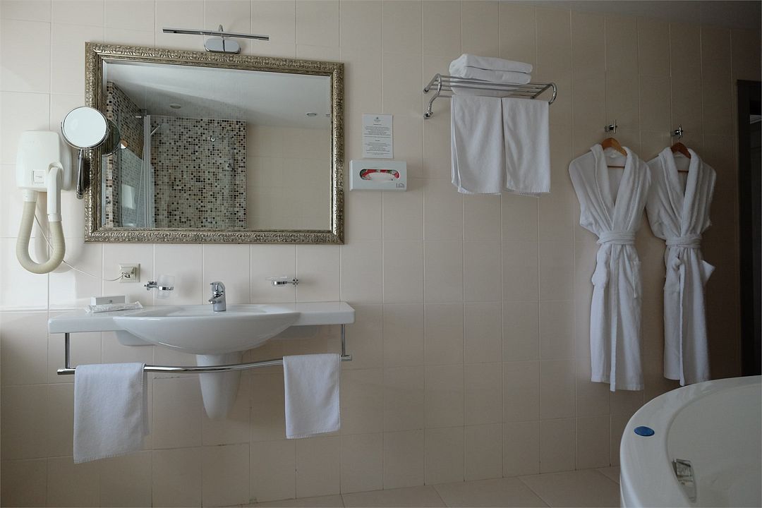 В санузле нет теплого пола и полотенцесушителя. Повесить мокрые полотенца просто некуда. Пришлось вешать на душевую. В номере тепло, а в с/у холодно очень.