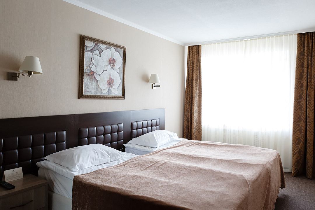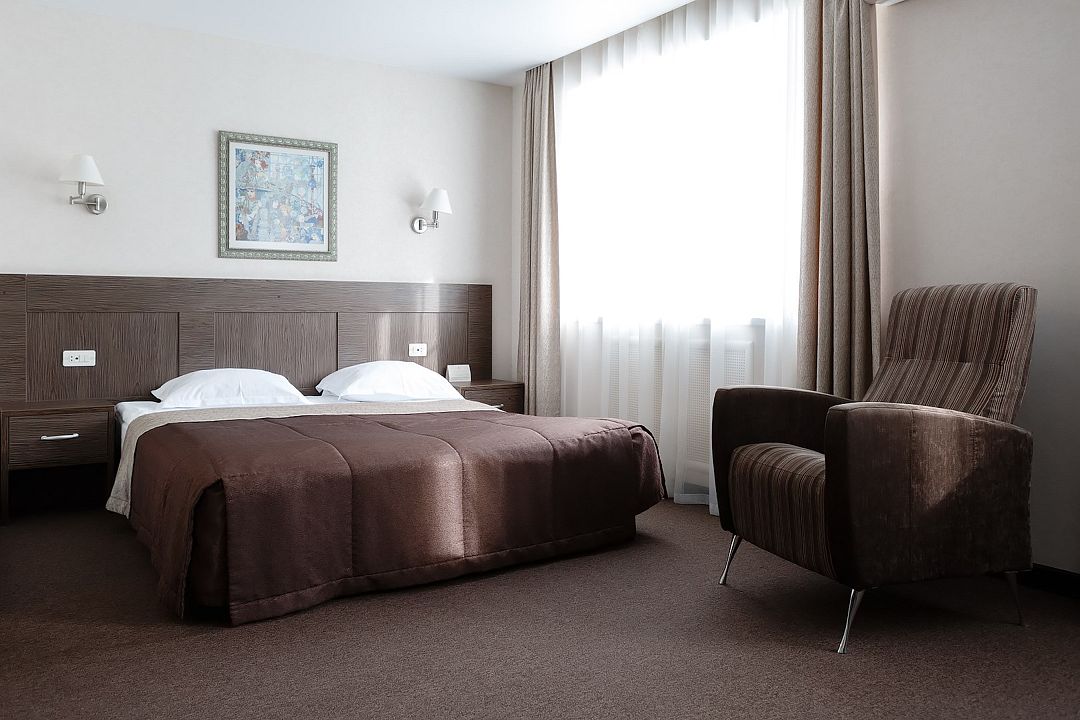 Просторный однокомнатный или двухкомнатный номер в обновленном дизайне с видом на сосновый бор Дети до 6-ти лет на основном месте принимаются бесплатно (за питание доп. плата). Детская кроватка (по запросу) комплиментарноУслуги и удобства