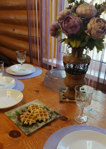 Наслаждайтесь свежим воздухом и живописными видами с большой веранды, где расположена обеденная зона. К Вашим услугам мангал и казан для приготовления вкуснейших блюд на открытом огне. А песчаный пляж на берегу реки станет идеальным местом для пляжного отдыха!