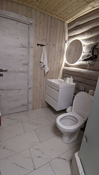 Просторные дома вместимостью до 8 человек полностью обустроены для комфортного проживания. Внутри предусмотрены тёплые полы, отопление, горячая и холодная вода, а также стиральная машинка, расположенная в санузле.