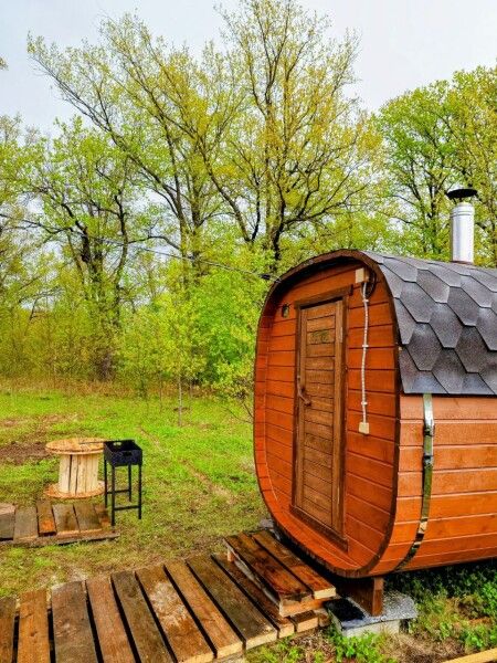 Этот уютный философский уголок идеально подходит для двоих, но при желании можно смело переживать экзистенциальные кризисы и вчетвером. А когда реальность становится слишком тяжелой, всегда можно отправиться в баньку на дровах, которая расположена совсем недалеко. С ее порогов открывается потрясающий вид на Жигулевские горы — как будто природа сама говорит: "Найди свой смысл в этой красоте!"