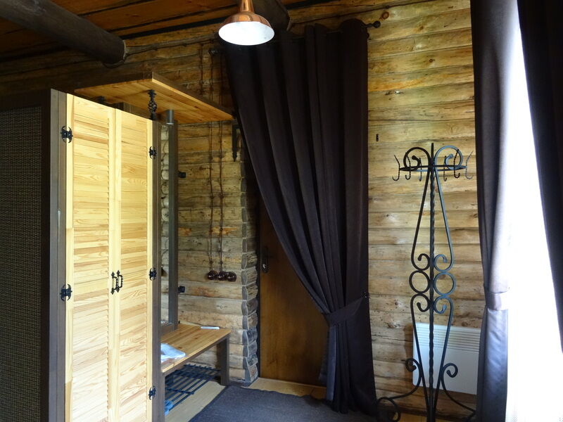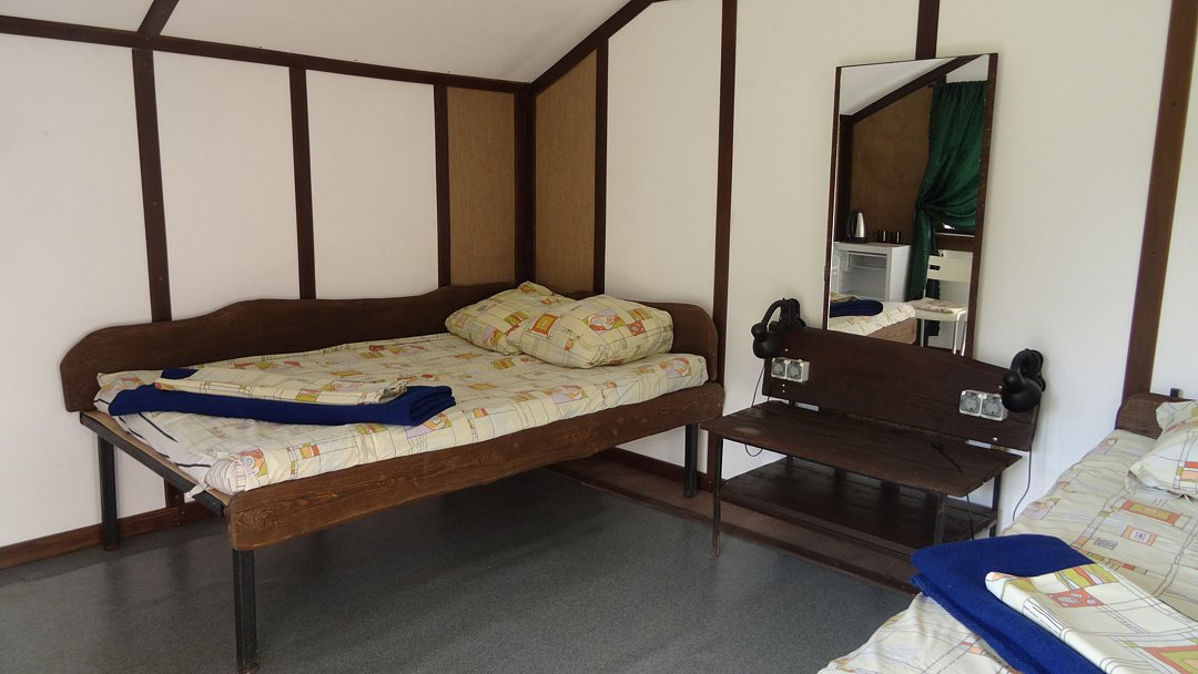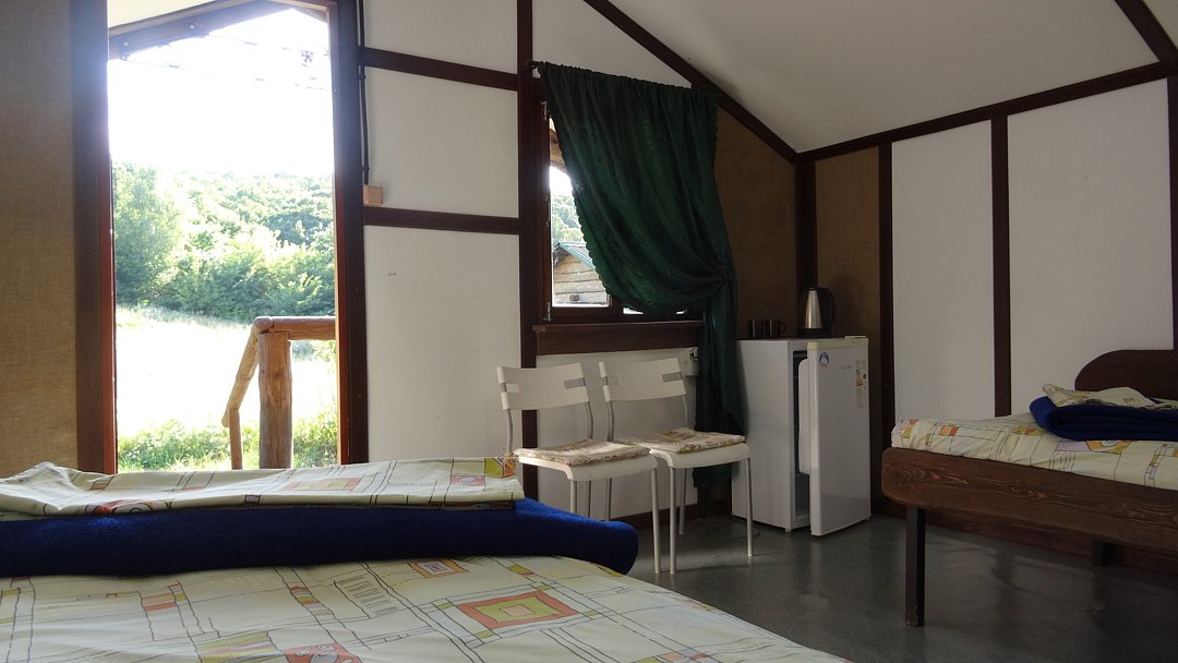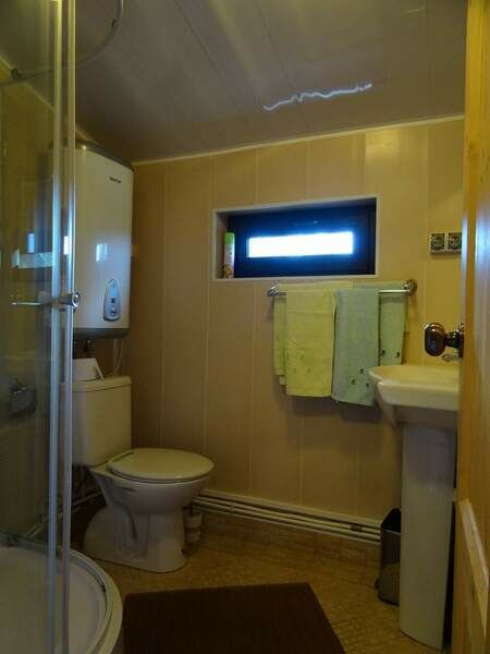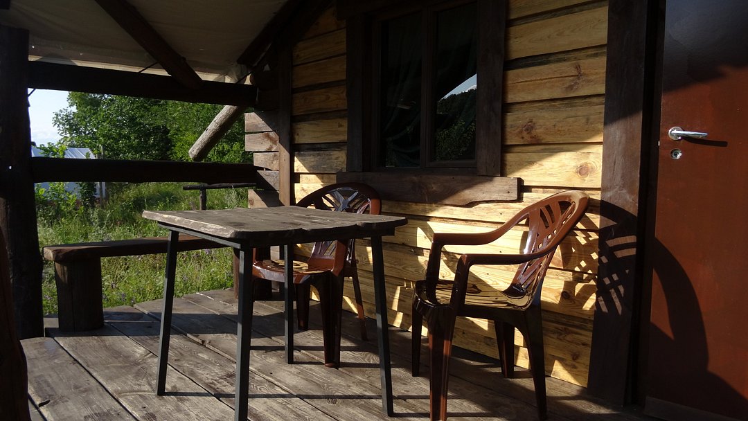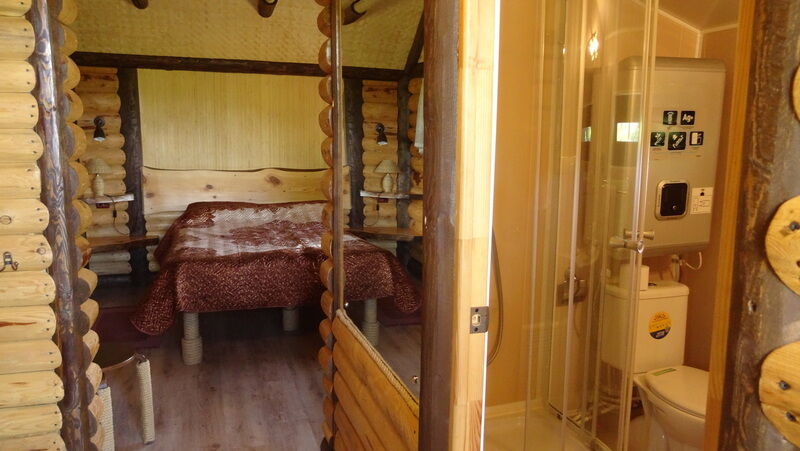 Удобства расположены в отдельно стоящих сооружениях общего пользования отдыхающих. Помещение светлое и просторное, имеются прикроватные светильники. Также есть уютная веранда с видом на лес и горы в разливе реки.