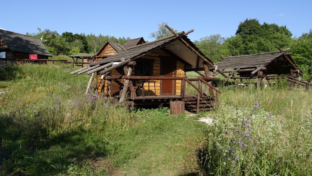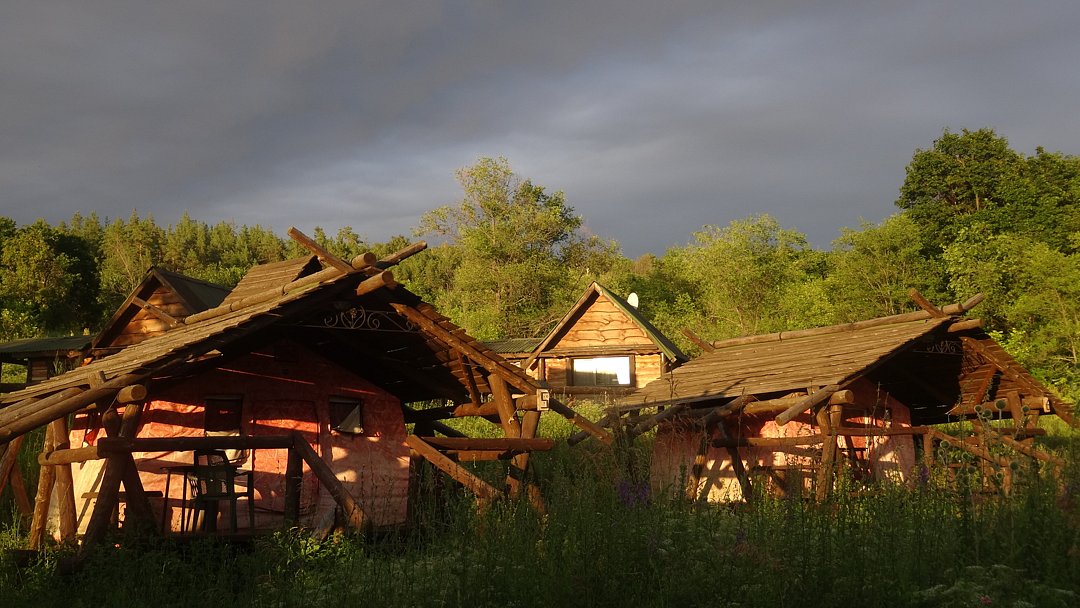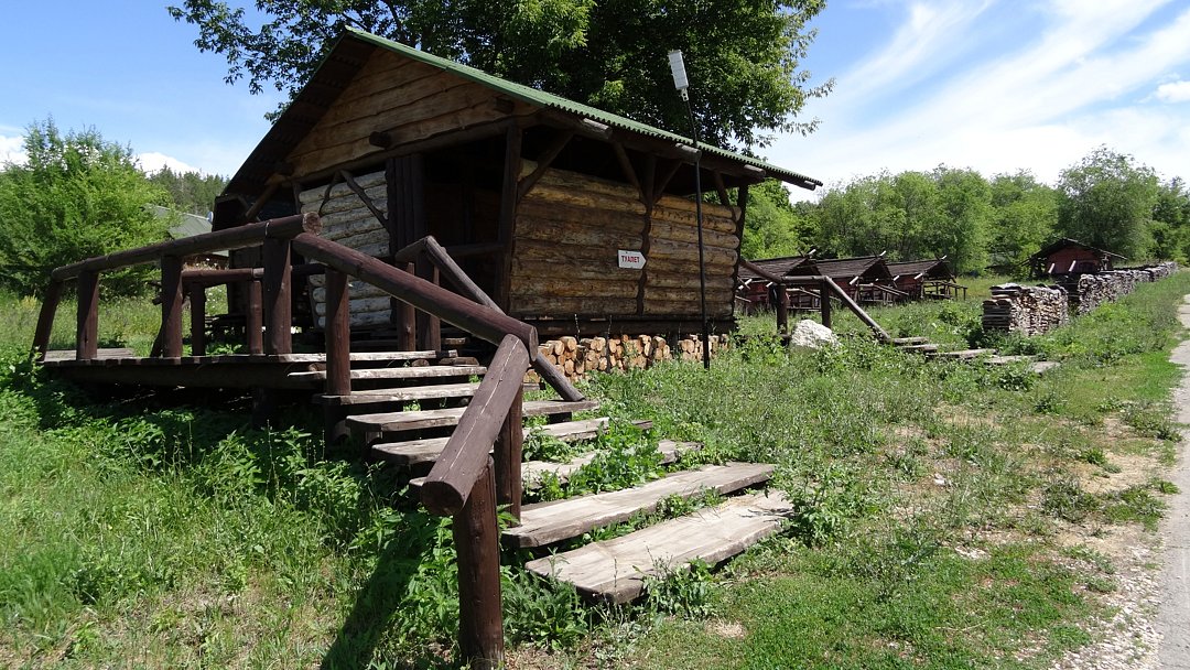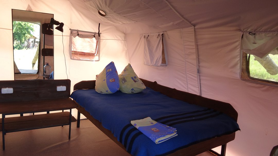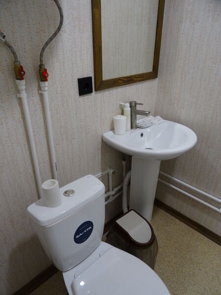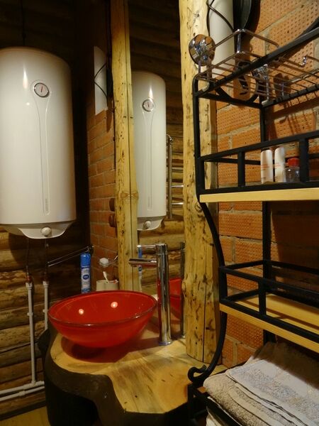 Удобства расположены в отдельно стоящих сооружениях общего пользования отдыхающих. Помещение светлое и просторное, имеются прикроватные светильники. Также есть уютная веранда с видом на лес и горы в разливе реки.