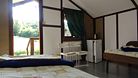 Всесезонное размещение с собственной кухней-гостиной, с просторной спальной и ванной комнатой. Подойдет как для романтического свидания вдвоем, так и для отдыха семьей, и в дружеской компании. Комфортное пребывание вам обеспечит кондиционер, отопление, горячая вода в душе, мягкие полотенца, мыльные принадлежности, тапочки, огромный холодильник, микроволновая печь, кастрюли, тарелки, ножи, чайник, спутниковое ТВ в каждой комнате, двуспальная кровать, диван-кровать и раскладное кресло.