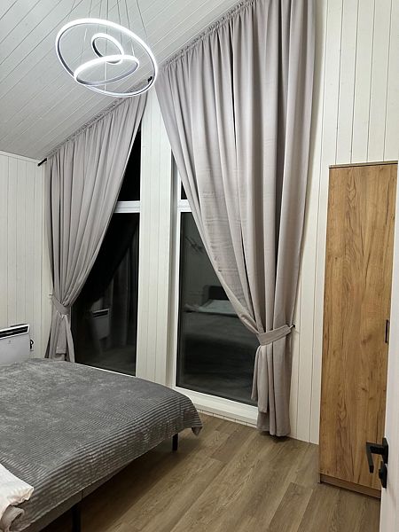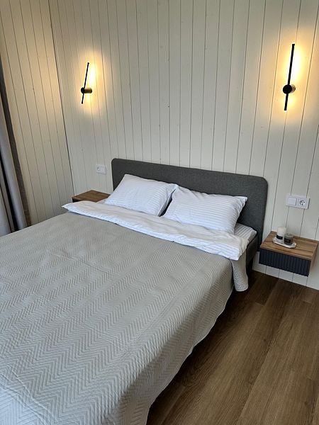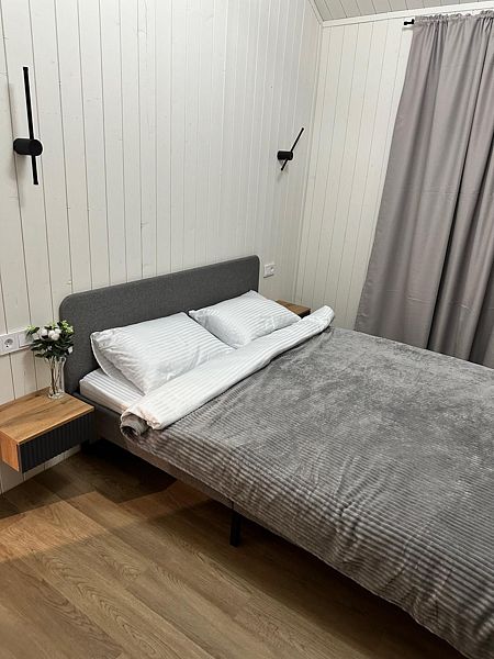 В доме 3 отдельные спальни с двуспальными кроватями и двуспальный раздвижной диван в гостиной. К каждому спальному месту предоставляем свежее постельное белье. Всего в доме 8 спальных мест.