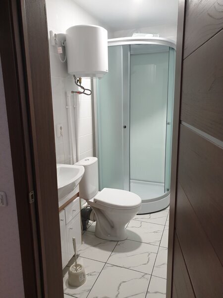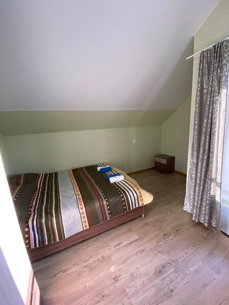 На втором этаже расположены 2 спальни с двуспальными кроватями. Просторный санузел: унитаз, раковина, душевая кабина. Выдаются полотенца.