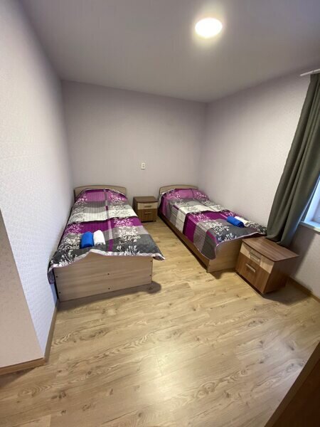 Дом на шесть номеров с отдельными входами и большой верандой. В доме есть: уютная кухня-гостиная на 3-4 человека. На кухне есть холодильник, чайник, плита, столовые приборы, посуда (тарелки, бокалы, стаканы, рюмки) на 3 персоны. Три стула со спинками. Телевизор. В доме уютная спальня. В спальне есть две полутороспальные кровати с прикроватными тумбами, светильники и удобная приставная раскладушка. Санузел: унитаз, раковина, зеркало, душевая кабина. Выдаются полотенца.