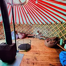 • монгольская юрта с дровяной печью;