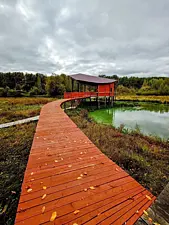 НедостаткиУжасное месторасположение: леса рядом нет, речка грязная, мутная, пляжа нет. Вид когда выходишь из домика: провода, какие-то кучи песка, ветки; позади домика: крутой спуск, спуститься нельзя, мутная речка, кусты, что даже с трудом можно разглядеть эту речку. Делать нечего там, погулять негде. А сфотографировали так, будто красиво и всё замечательно. Полнейшее разочарование. В домике было плохо убрано, возле домика грязные столы, стулья, мангал развалившийся. Посуда битая, поломанная.