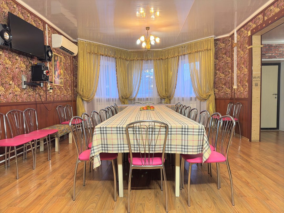 - Банкетный зал: Просторный зал площадью 60 м², рассчитанный на 30 гостей, идеально подходит для праздников и корпоративных мероприятий.