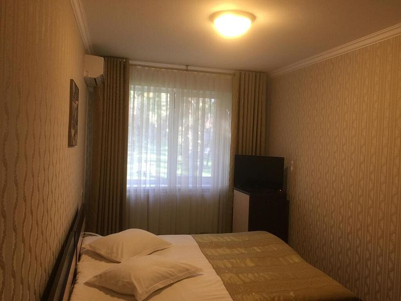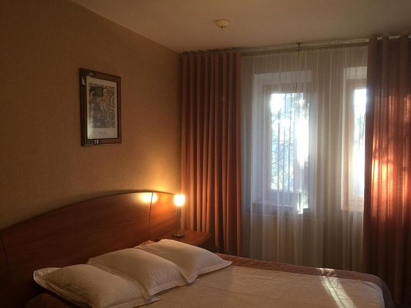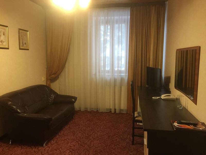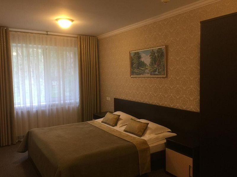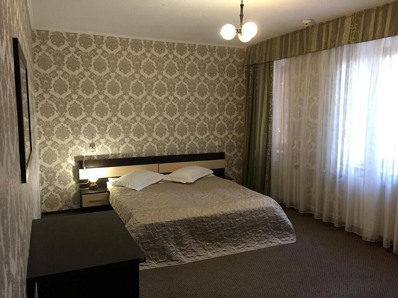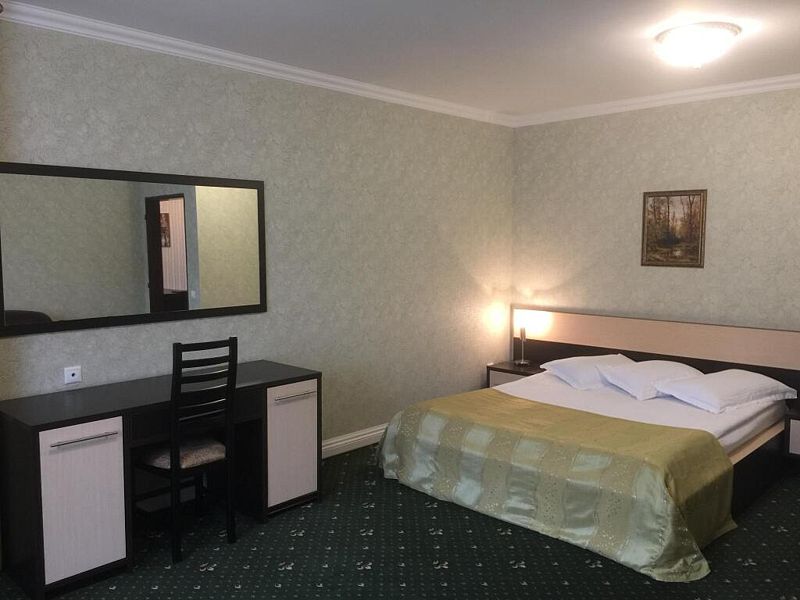 однокомнатный двухместный номер со всеми удобствами площадью 30 кв.м. Напольное покрытие — ковролин. В номере — двуспальная кровать или две раздельные кровати с прикроватными тумбочками, полным комплектом постельного белья и полотенец на двоих человек, шторы — вуаль и плотные, телевизор, холодильник, стол, стул, шкаф, зеркало, прикроватный светильник, вешалки для одежды, стаканы, санузел и ванная совмещены. В номере имеются средства личной гигиены: шампунь, гель для душа, жидкое мыло, пенка для рук, туалетная бумага. Размещение с 2 завтраками.