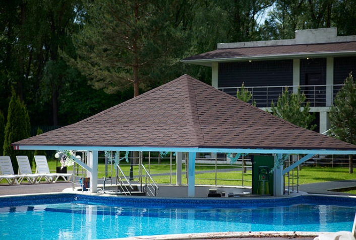 Для посетителей лаунж-зоны доступно пользование бассейном и спортивными площадками. К услугам гостей 2 варианта беседок: