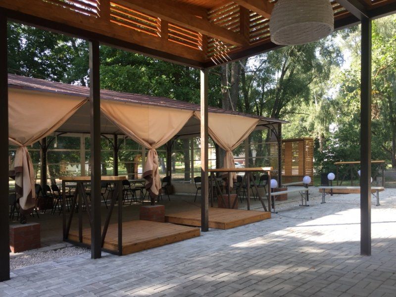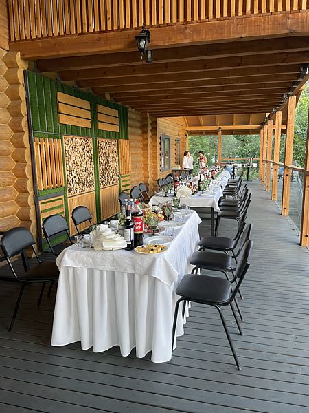База отдыха прекрасно подходит не только для отдыха семьей и друзьями, здесь так же возможно и проведение корпоративных мероприятий, различных семинаров и тренингов. На территории есть банкетный зал и летние беседки, которые сдаются в аренду. По предварительному заказу организовывается питание.