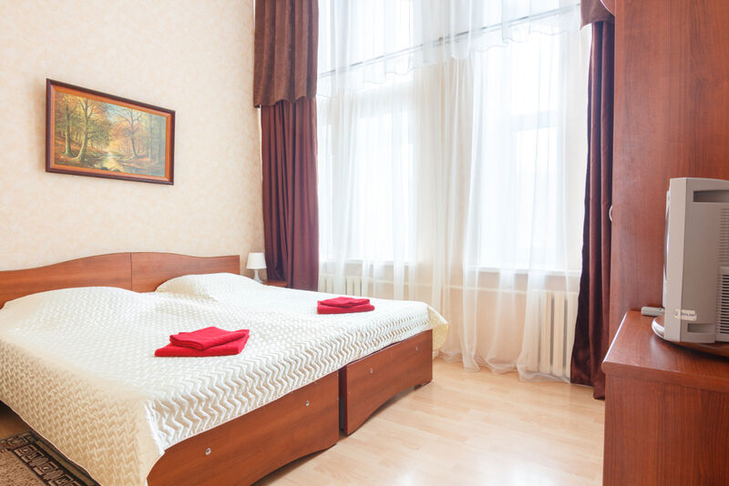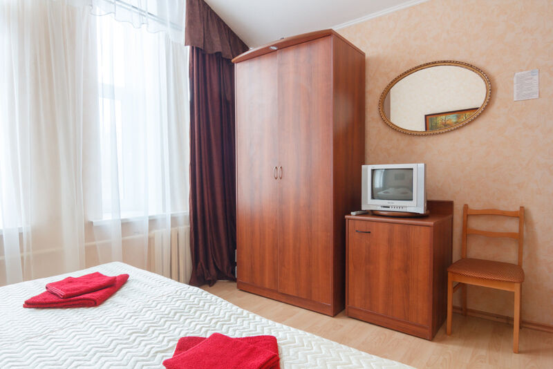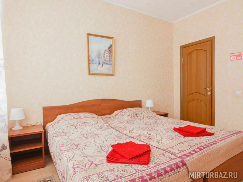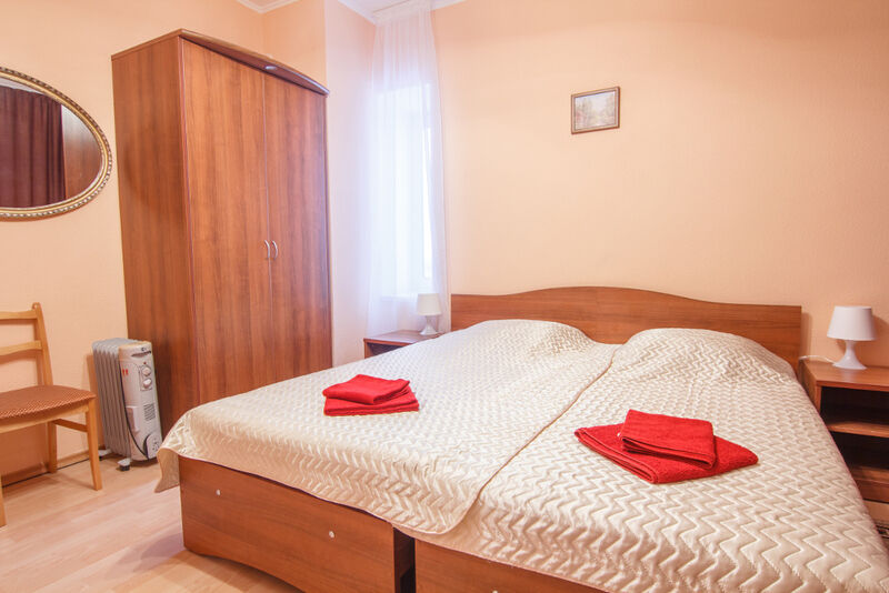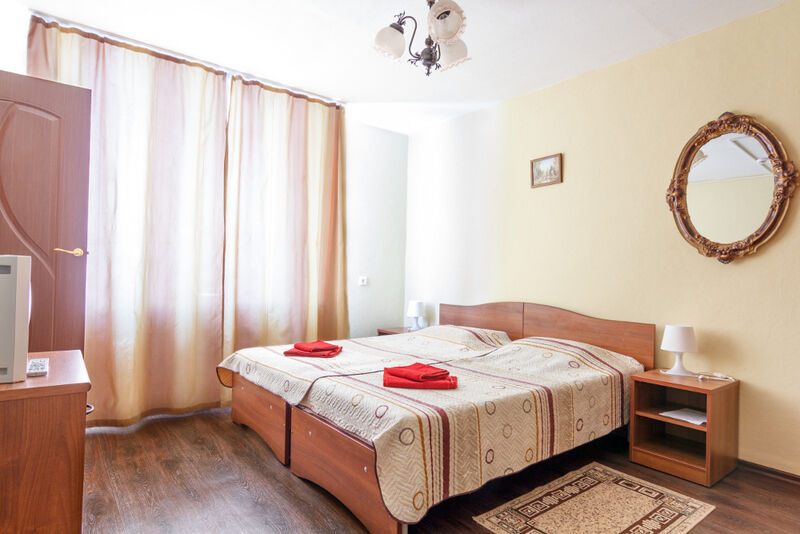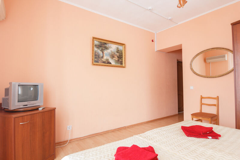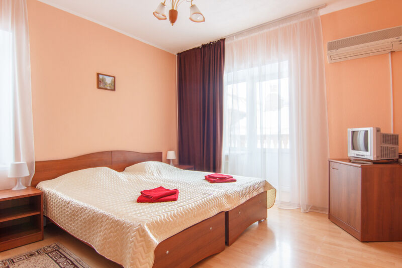 Однокомнатный номер (с балконом/без балкона). Кондиционер. Две односпальные кровати, шкаф, прикроватные тумбочки, стул, телевизор. Душевая кабина и туалет в номере.