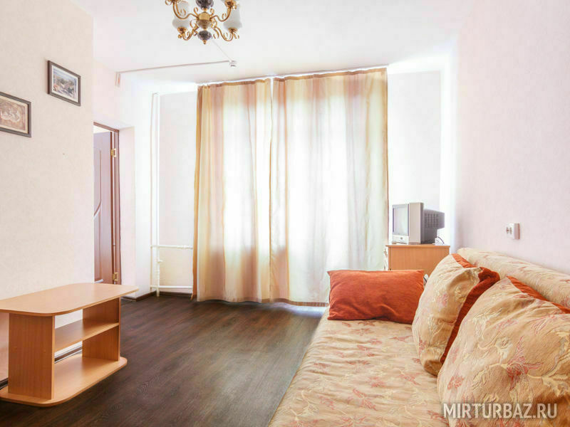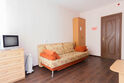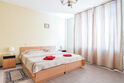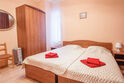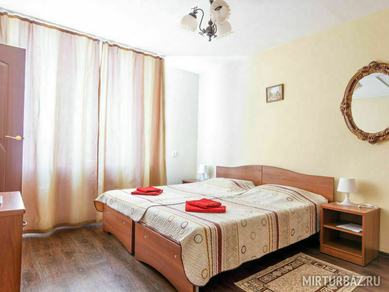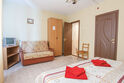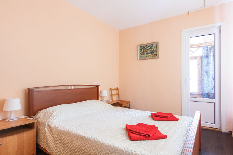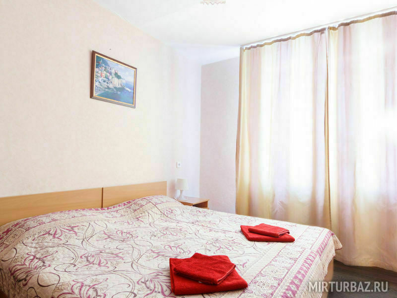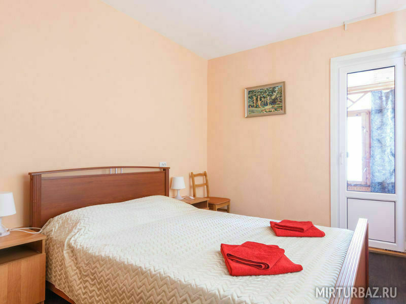 Двухкомнатный номер с балконом и балконом-верандой. Двуспальная кровать, диван-книжка, шкаф, столик, кресла, телевизор. Душевая кабина и туалет в номере.