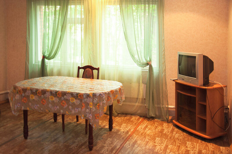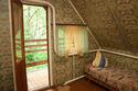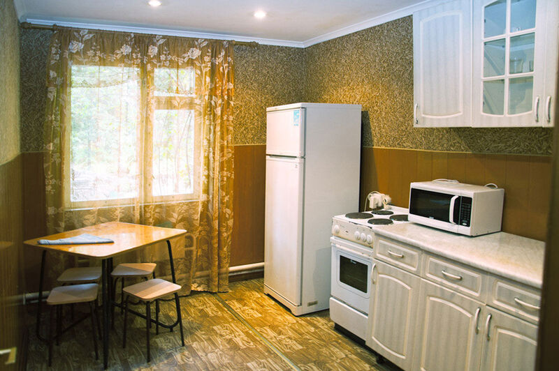 Кухня с электрической плитой, холодильник, гостиная, спальни с 1-но спальными кроватями, раковина с холодной водой. Туалет и душ на территории.