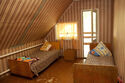 1-ый этаж: гостиная: стол, мягкий уголок; кухня: кухонный гарнитур, посуда для сервировки стола, электрическая плита, электрический чайник, холодильник, раковина с горячей и холодной водой, стол стулья; санузел: раковина, туалет, ванна; две спальни с 2-х спальными кроватями в каждой. 2-ой этаж: три спальни с 2-х спальными кроватями.