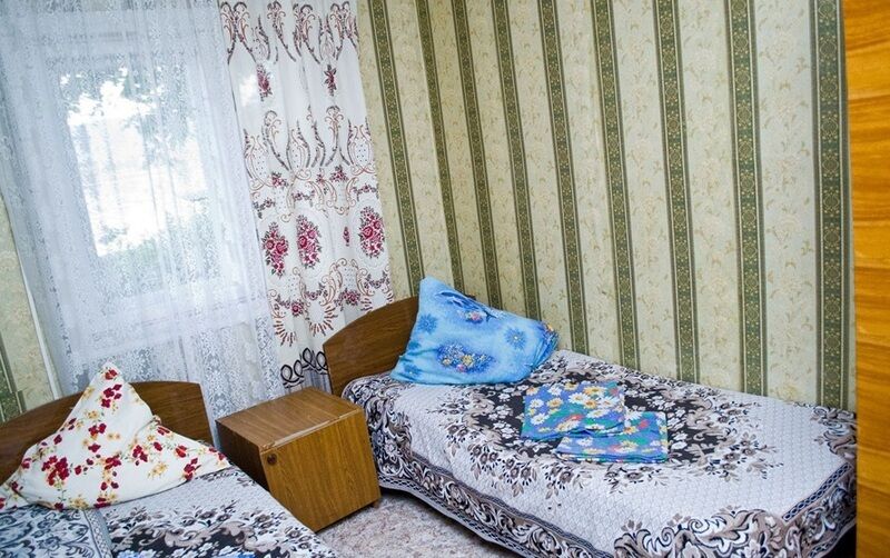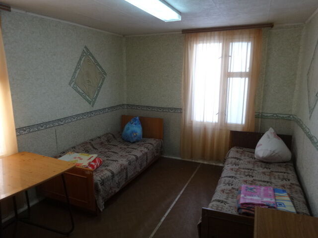 2 спальни с 1-но спальными кроватями, раковина с холодной водой, туалет. Душ на территории.