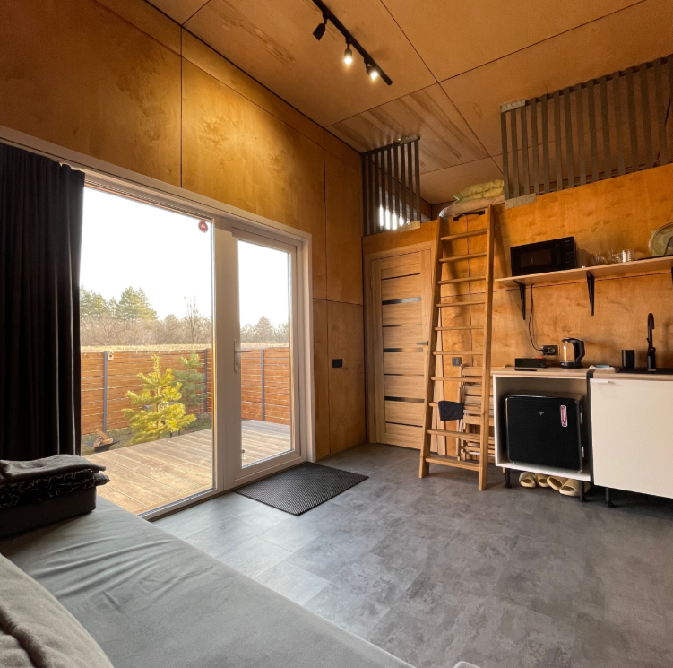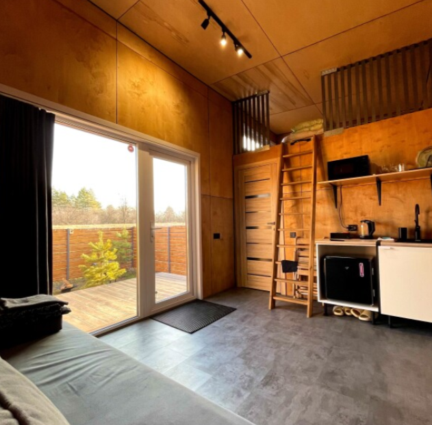 • 4 спальных места (двуспальный матрас на мансарде и раскладывающийся диван);