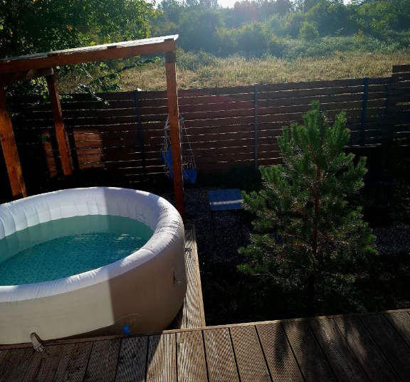 Отдельно стоящий чан под открытым небом. Вместимость — 4 человека. Удобнее всего пользоваться чаном проживающим в домике № 2 (расположен наиболее близко). Домик № 4 находится дальше всех от чана.