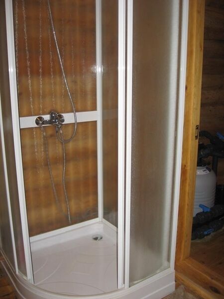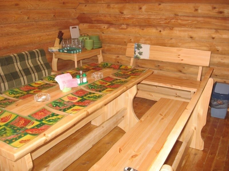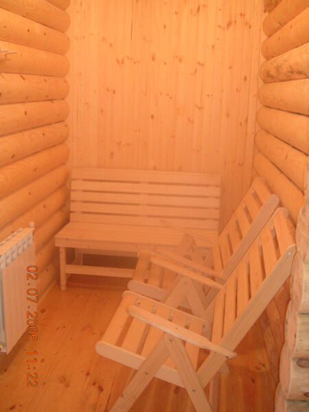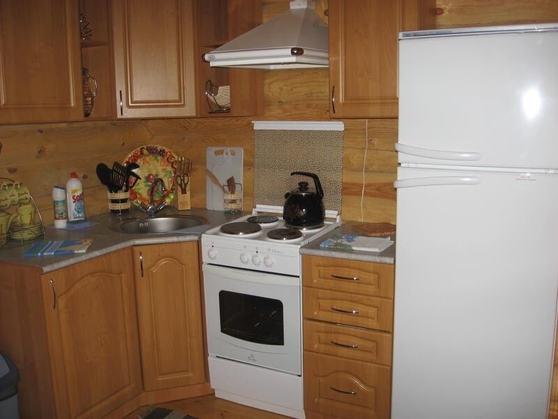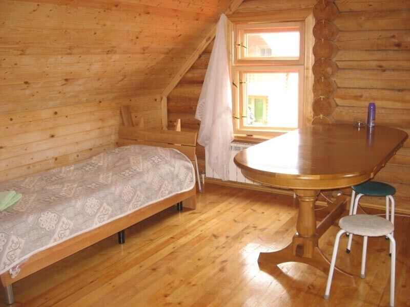 На первом этаже располагается просторная гостиная с телевизором, раскладным диваном и удобными креслами. С гостиной совмещена кухня, оснащенная кухонным гарнитуром, электрической плитой, холодильником, раковиной (гор. и хол. вода), кухонным столом, стульями и посудой. На этом же этаже располагается санузел (душевая кабина и туалет). Второй этаж состоит из 2х спален с полутора и 2х спальной кроватями. На веранде Вы сможете отдохнуть в удобных креслах, потягивая сок за столиком. Вы не почувствуете, что находитесь вдалеке от дома. Уютная домашняя атмосфера Вам обеспечена. Все дома с верандами, оборудованными пластмассовыми столами и креслами.