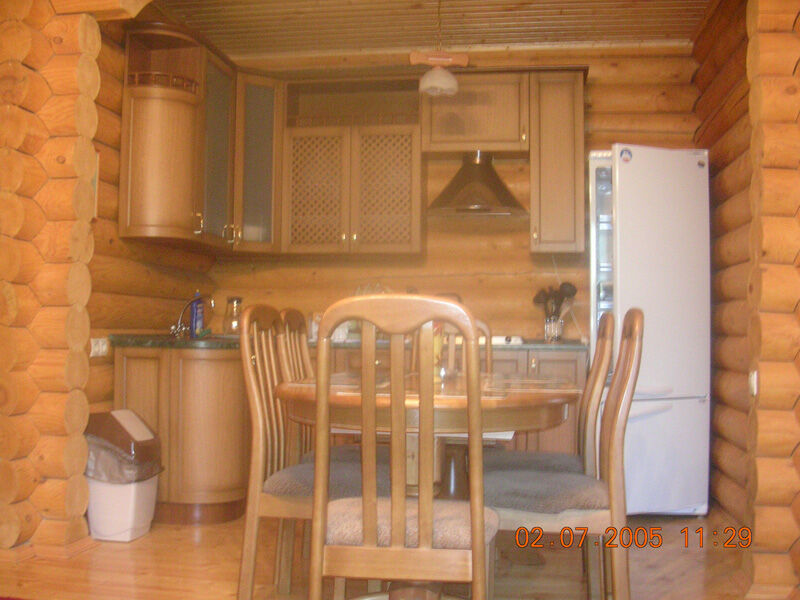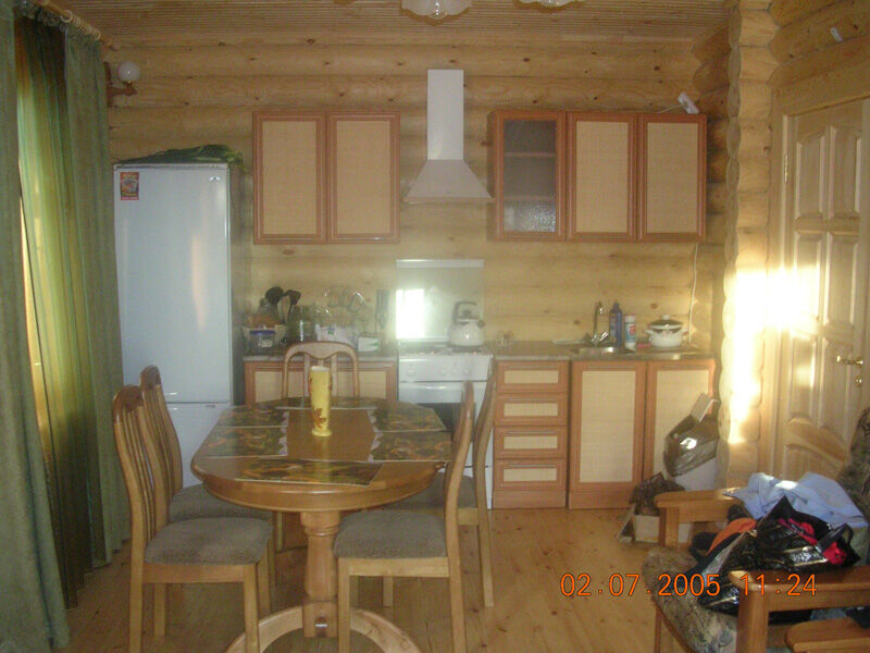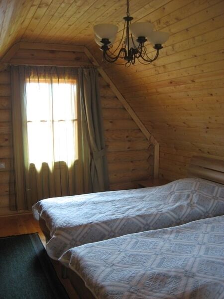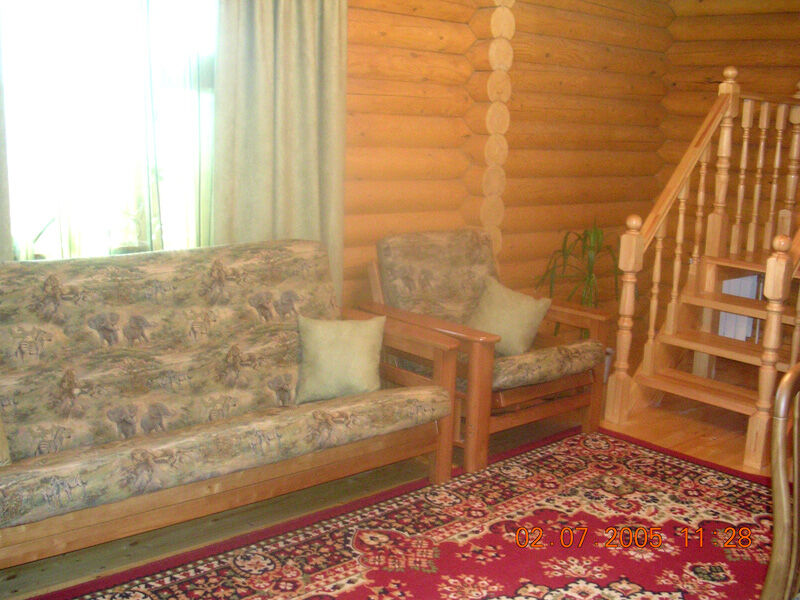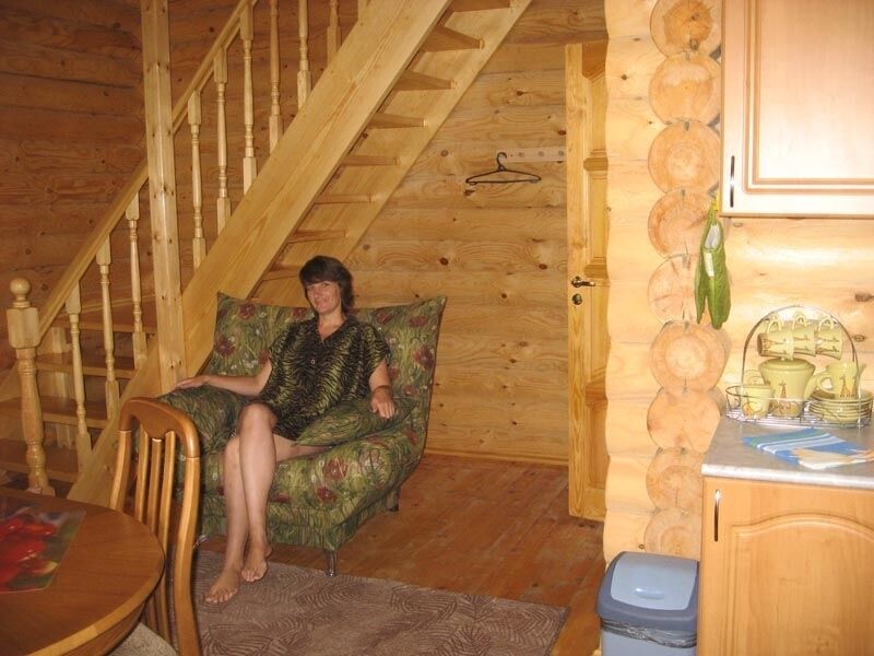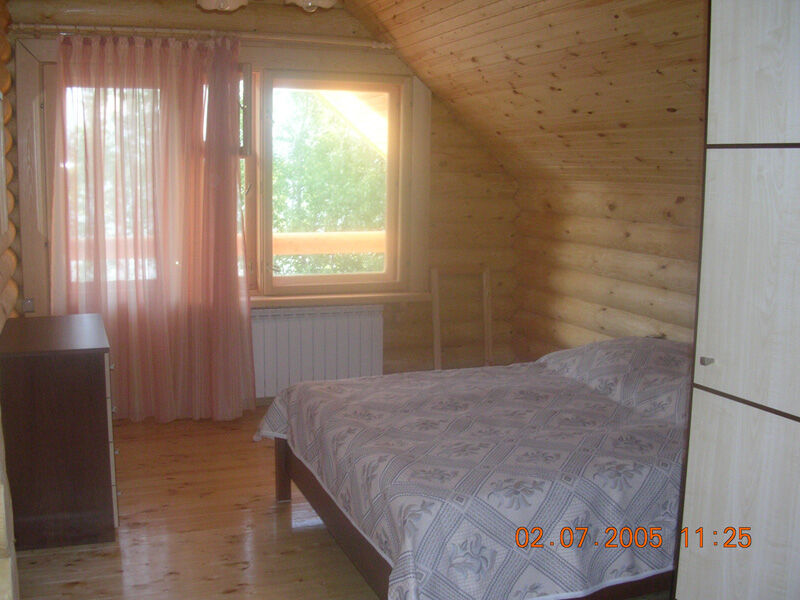 Располагает просторной гостиной с телевизором, раскладным диваном и креслом на первом этаже. Кухня, оснащенная кухонным гарнитуром, электрической плитой, холодильником, раковиной (гор. и хол. вода), посудой, кухонным столом и стульями, совмещена с гостиной. На этом же этаже имеется санузел (душевая кабина и туалет). На 2м этаже находится спальня с 2мя полуторными кроватями. Отдохнуть можно и на уютной веранде, оборудованной пластассовым столиком и креслами. Все дома с верандами, оборудованными пластмассовыми столами и креслами.