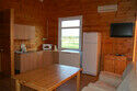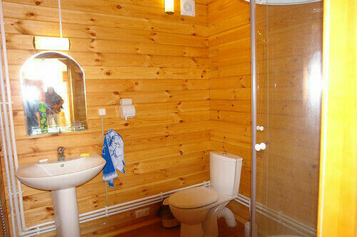 Дом площадью 44,2 кв.м рассчитан для комфортного проживания четырех человек, в каждой из 3-х комнат есть кондиционер. В 2-х спальнях по две удобные 1.5 спальные кровати, прикроватная тумбочка и шкаф для одежды. На кухне есть холодильник, электроплита, телевизор (телевидение Триколор). Санузел: холодная/горячая вода, душевая кабина.
