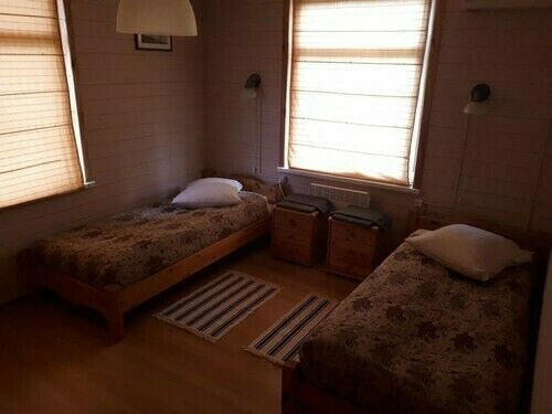 Двухэтажный дом площадью 95,1 кв.м рассчитан для комфортного проживания шести человек. В каждой из 4-х комнат есть кондиционер. В 3-х спальнях по две удобные 1.5 спальные кровати прикроватные тумбочки и шкафы для одежды. На кухне есть холодильник, электроплита, телевизор (телевидение Триколор), кухонная посуда. Два санузла: холодная/горячая вода, душевая кабина. На летней веранде стол со скамейками для приятного отдыха.