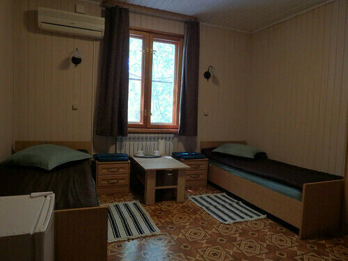 Номер в Мини-гостинице 11-15 кв.м. для комфортного проживания 2 человек. В номере есть кондиционер, две удобные кровати, прикроватная тумбочка и шкаф для одежды, телевизор, чайник, холодильник.