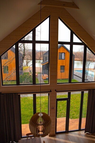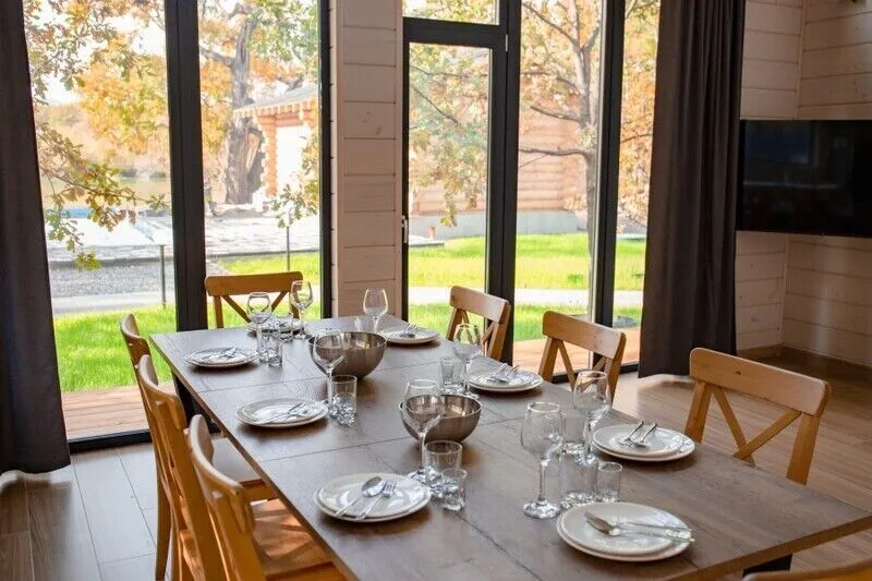 Семейный двухэтажный дом с панорамными окнами, видом на озеро и горы. В доме 2 спальных комнаты, 1 санузел, душевая кабина, просторная кухня — гостиная. На кухне есть вся необходимая посуда и техника.