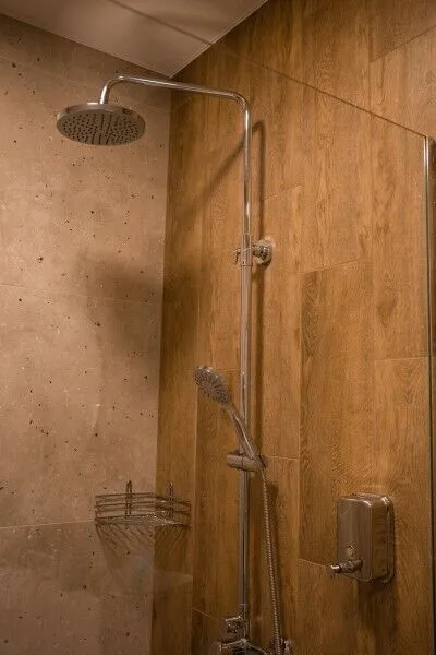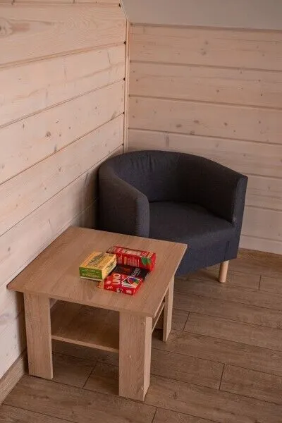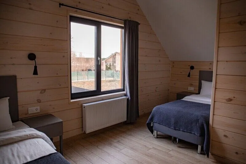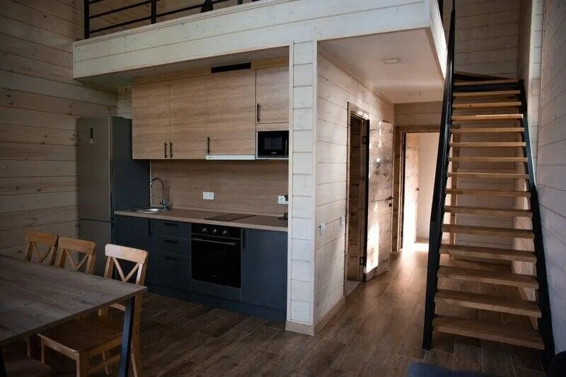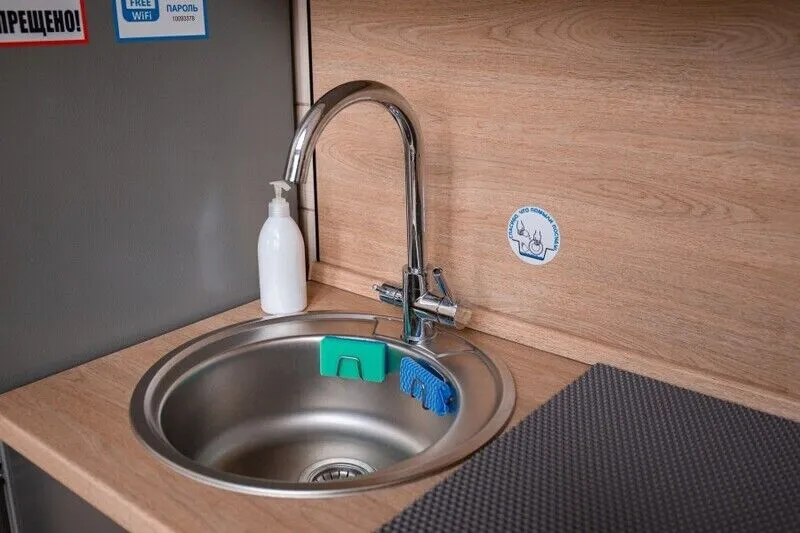 Душевая зона располагает не только удобными душевыми, но и традиционным обливным ведром для завершающего этапа. Комната отдыха с теплым полом и полноценная кухонная зона с плитой, микроволновкой и чайником создают все условия для приятного досуга.