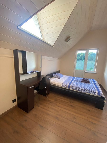 - 3 спальни на втором этаже, в каждой по 1 двухспальной кровати (для 2 чел) и 1 по доп. месту на раскладушках.
