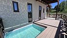 Выход из дома на патио с летней кухней и доступом к бассейну