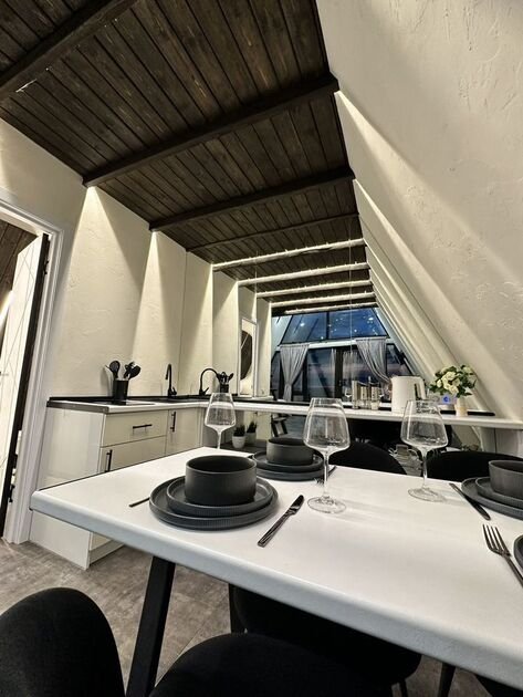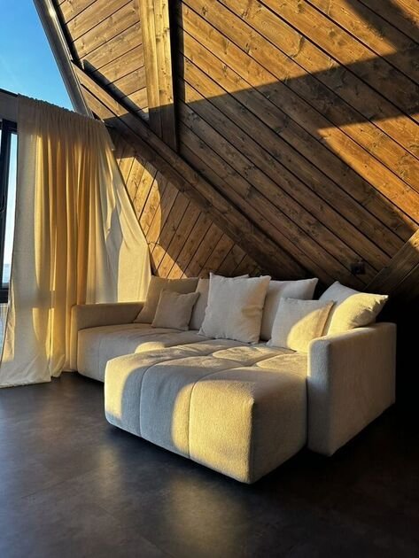 Каждый дом продуман до мелочей: гостей ждёт стильная гостиная с удобным диваном, полностью оборудованная кухня с современной техникой и посудой, а также комфортабельная ванная комната с душевой кабиной. Интерьеры создают атмосферу уюта и гармонии, а панорамные окна открывают прекрасный вид на окружающие пейзажи. На террасе одного из домов установлено джакузи, где можно расслабиться после насыщенного дня. Для любителей отдыха на свежем воздухе оборудованы мангальная зона и уютная костровая чаша.