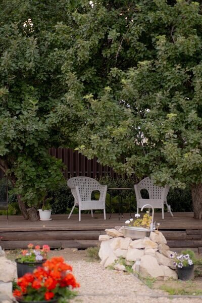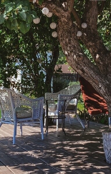 Зона отдыха под яблоней