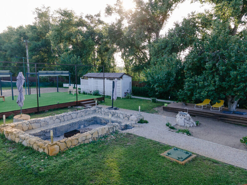 Здесь вы можете арендовать велосипеды и сап-борды, остановиться на ночлег или насладиться вкусной едой после активного времяпрепровождения на свежем воздухе. В парке есть песчаный корт с сеткой, место для костра с мангалом и уютные зоны для отдыха в уединении.