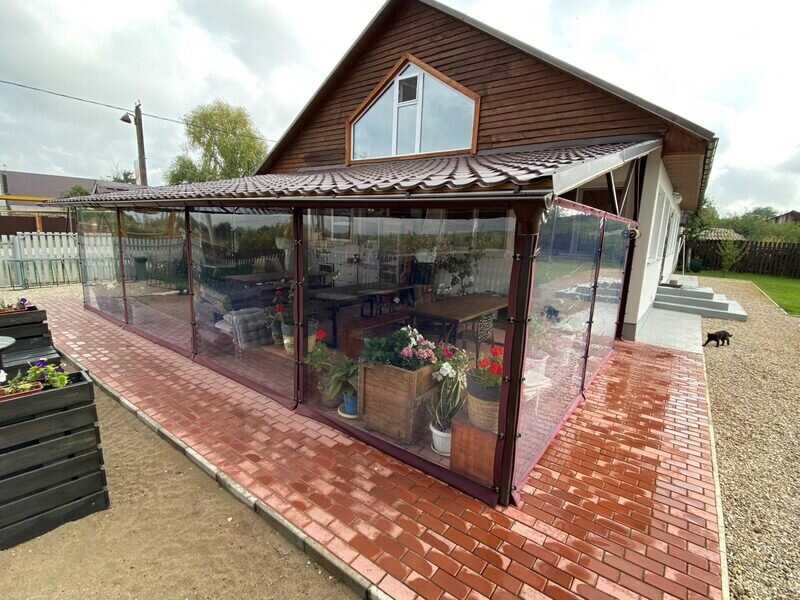 Кафе Велопарка представляет из себя крытое пространство, защищенное от ветра с инфракрасными обогревателями на случай прохладной погоды и вентиляторами на случай жары.