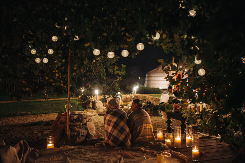В вечернее время можно взять мягкие подушки, пледы и просто посидеть с друзьями у костра или запечь зефир на шпажках.
