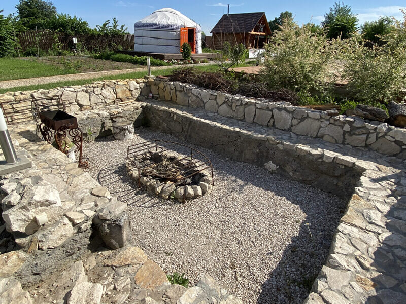 Читать полностьюРядом с яблоней есть специально оборудованное место для приготовления шашлыков, рыбы или овощей на углях.